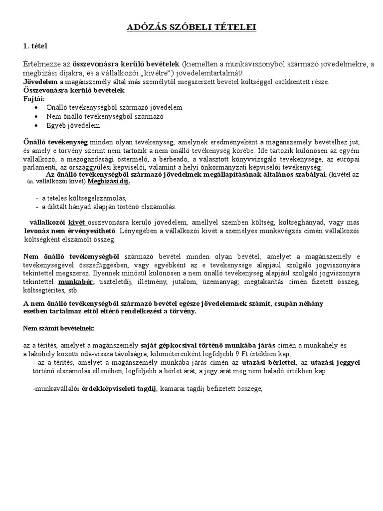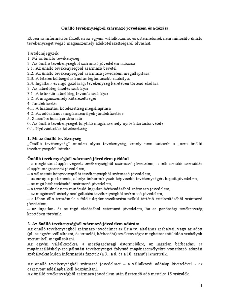 Az Onallo Tevekenyseg Es Az Onallo Tevekenysegbol Szarmazo Jovedelem Pdf Ingyenes Letoltes