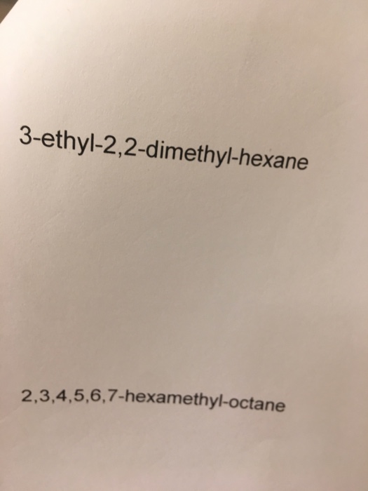 Solved 3 Ethyl 2 2 Dimethyl Hexane 2 3 4 5 6 7 Hexamethyl Chegg Com