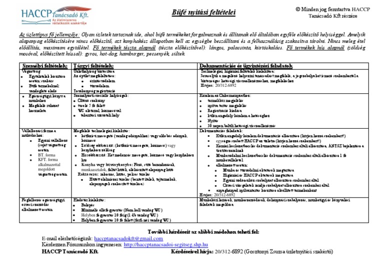 Bufe Nyitas Feltetelei Haccp Szakerto