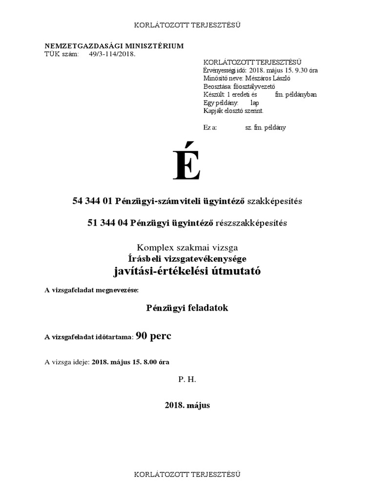 Nemzetgazdasagi Miniszterium Penzugyi Szamviteli Ugyintezo Szakkepesites Komplex Szakmai Vizsga Szobeli Vizsgatevekenysege Pdf Free Download