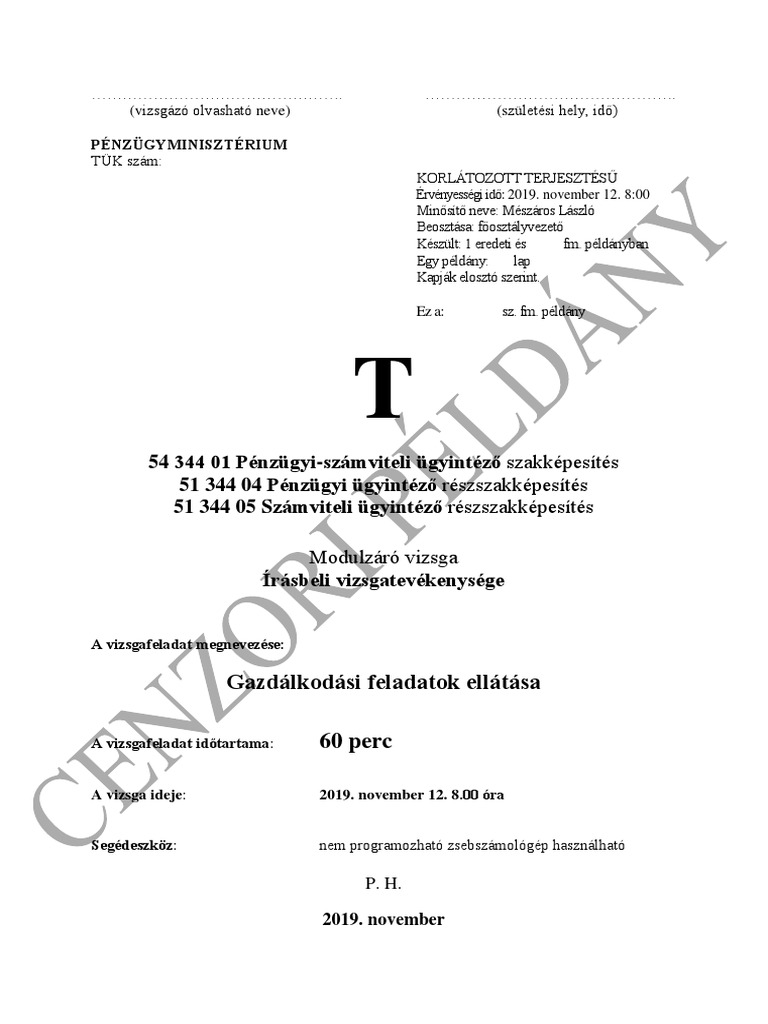 Korlatozott Terjesztesu Cenzori Irasbeli Vizsgatevekenyseg Pdf Free Download